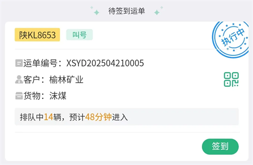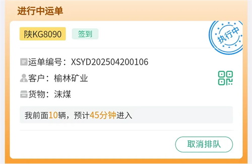 5.. 显示绿色字体就完成了排队,进矿装车直到运单完成