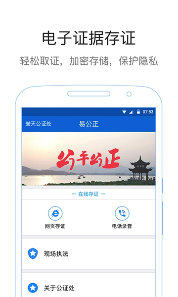 易公正最新版是杭州剑证网络科技有限公司推出的一款电子证据综合服务平台,支持线上线下多场景取证,比如录音、录像、拍照等等,适用于合同签约、知识产权保护等需求。界面简洁高效,操作简单,有需要的朋友千万不要错过了,快来下载试试吧!