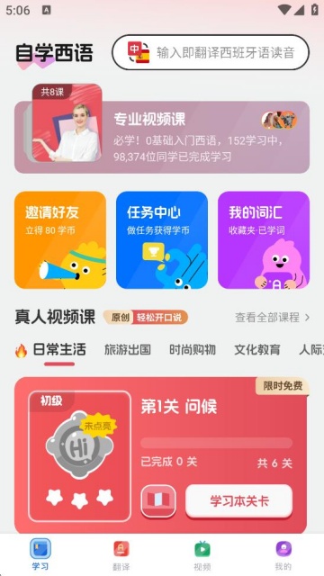 西班牙语学习是一款非常专业的西语教学软件,学习的方式很多,里面有好玩的闯关游戏,在您玩的同时还可以学到很多知识哦!让您轻轻松松就能说出一口流利的西班牙语,非常的不错。不管您是生活,日常还是旅游,在这里学习就足够了,绝对是您学习的最佳帮手,一定要在这里下载哦!