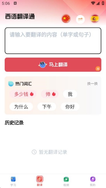 -西语整句翻译发音功能,且支持语音输入查询;