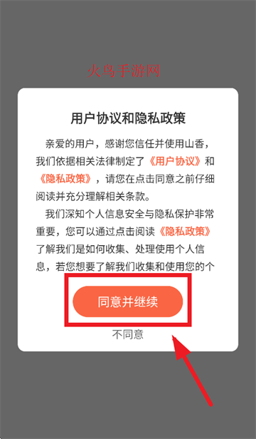 下载安装并打开山香教育app,先同意并继续用户协议和隐私政策