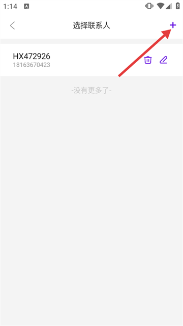3、在选择联系人页面,点右上角【+】,进入新增联系人页面。