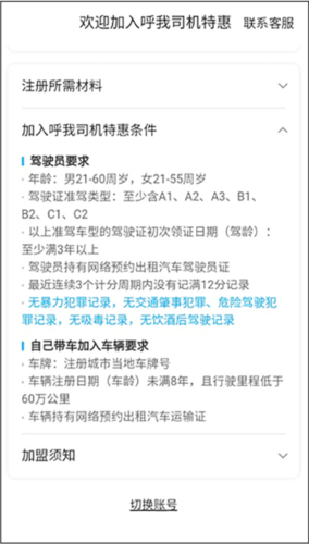 4、还可以查看加入呼我司机特惠需要的条件,看自己是否符合。