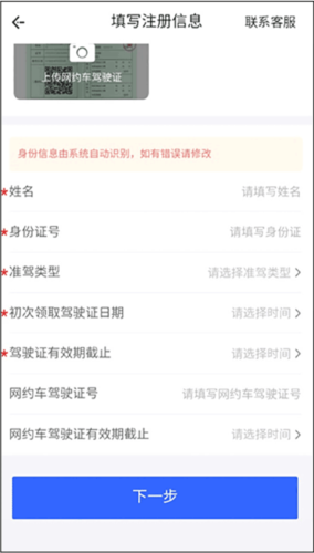 7、然后可以填写个人基本信息进行注册,点击下一步填写车辆信息即可注册成功。