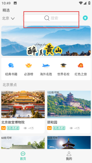 1、在首页搜索栏输入目的地或景点,查找目标景点。