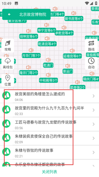 3、选择想听的讲解,点击播放,聆听景点故事。