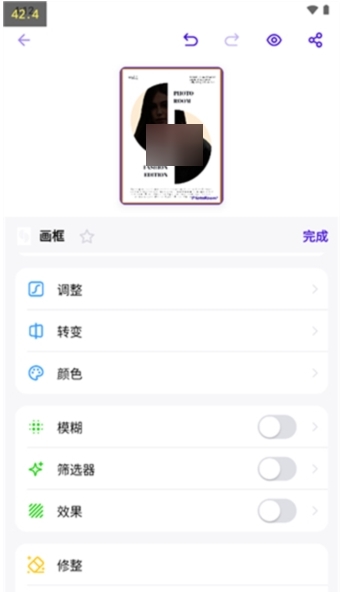 2、通过创建模糊的照片作为原始照片的背景来增强照片。调整不透明度,然后选择图像边框的类型和大小;
