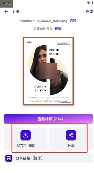 将您的精彩图片保存导出到您的资料库,并且还可以分享。