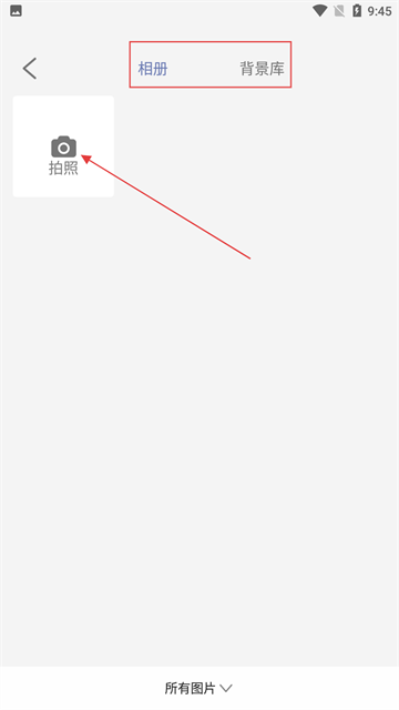 2、在抠图页面,可选择【拍照】获取新图,或从【相册】【背景库】选图。