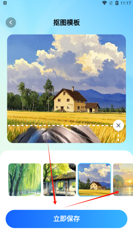 4、点击抠图模板,找到自己喜欢的风景模板就能一键抠图替换背景;