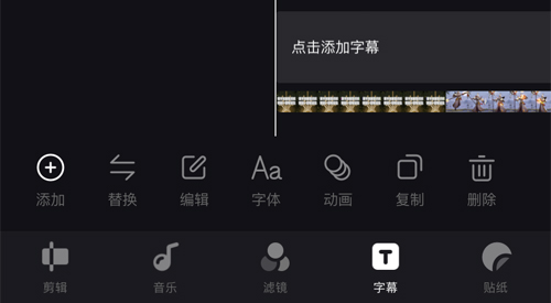 当我们在使用畅片app编辑视频的时候,你们可以看到最下面的一行里面有一个功能是【字幕】,点击之后你们可以是【添加字幕】、【替换字幕】、【编辑字幕】、【字体】、【动画】、【复制字幕】和【删除字幕】。如果说你们不想要字幕的话,你们就点击【删除】就可以实现了。