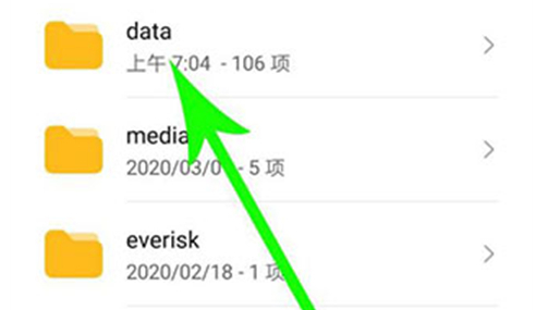 3、在“Android”文件夹中,滑至“data”文件夹并点击进入。