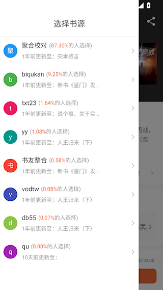 3、选择一个书源开始阅读,可以参考选择的比例