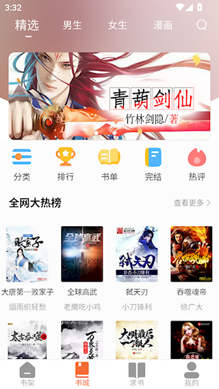 1、书城中提供了分类、排行、书单等多种栏目,可以快速找到喜欢的小说