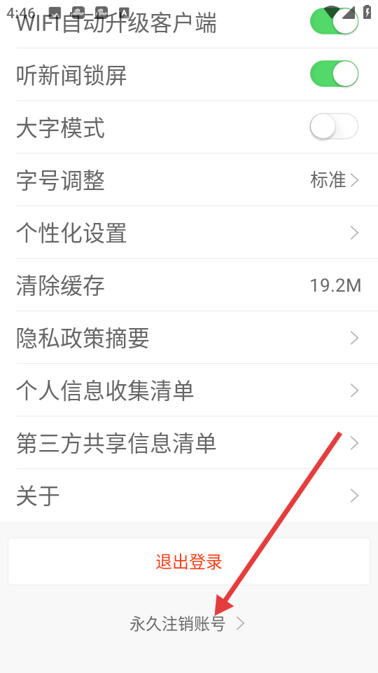 2、设置页面中找到永久注销账号选项并点击,该选项明确指向账号注销功能,点击后会进入注销账号的具体流程界面,进一步了解注销账号的相关条件和注意事项。