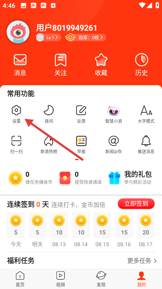 1、打开应用点击底部导航栏中的我的选项,进入个人中心页面,在个人中心的常用功能板块找到并点击设置图标,这是进入账号相关设置的入口。