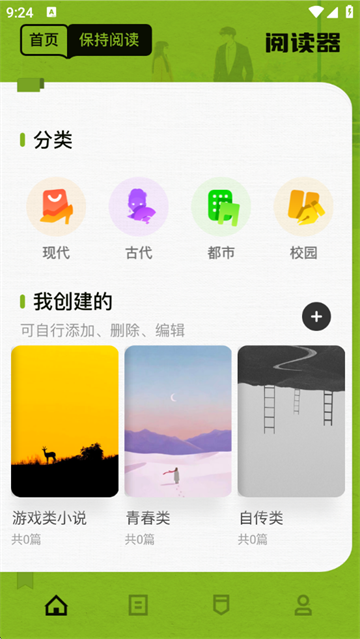 看书神器app官方下载是长沙比特跳动信息技术有限公司推出的一款超好用的看书神器,拥有现代、古代、都市、校园等类型的资源,聚合全网百万小说资源,支持TXT/EPUB等多格式本地阅读。界面清晰简洁,喜欢看书的朋友赶紧下载一起看书吧!