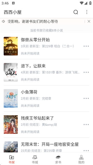 西西小屋app最新版汇集了海量的精彩内容,小说章节与作者同步更新,让你第一时间掌握剧情进展告别漫长等待。轻松管理你的阅读进度和收藏,打造属于你的私人图书馆。基于你的阅读喜好,智能算法为你推荐更多精彩小说,需要的赶紧来下载吧。