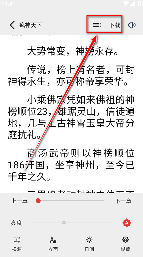 6.可以看到下方支持章节切换、亮度调节、换源等功能,大家可以按需点击使用哈。