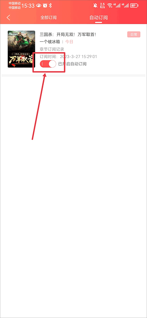 2、进入后在自动订阅界面中将已订阅书籍下方的自动订阅关闭即可