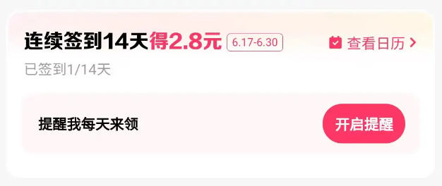 不过需要注意的是,不管是完成一轮签到14天的任务还是断签,系统都会自动跳转至第一天。