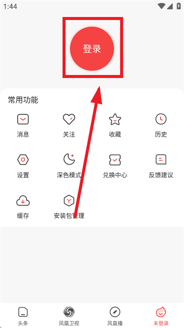 下载安装并打开凤凰视频极速版app,进入后点击未登录