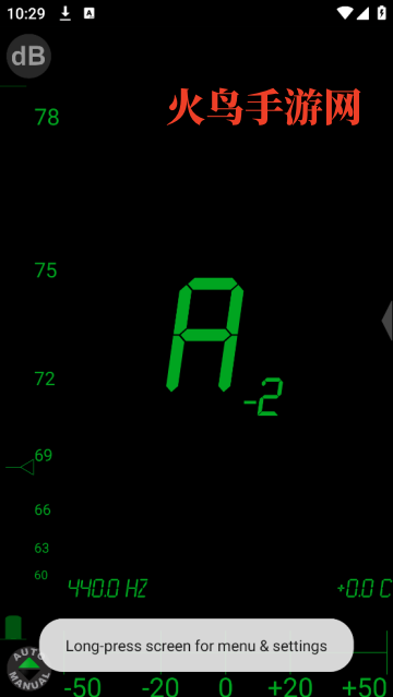 屏幕底部实时显示当前音调的精确**频率(Hz)**和**误差(音分)**数值。