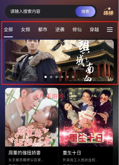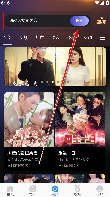 1.请在本站下载嗨贝短剧app,点击首页上方的搜索框,输入关键字,再点击右边的搜索。