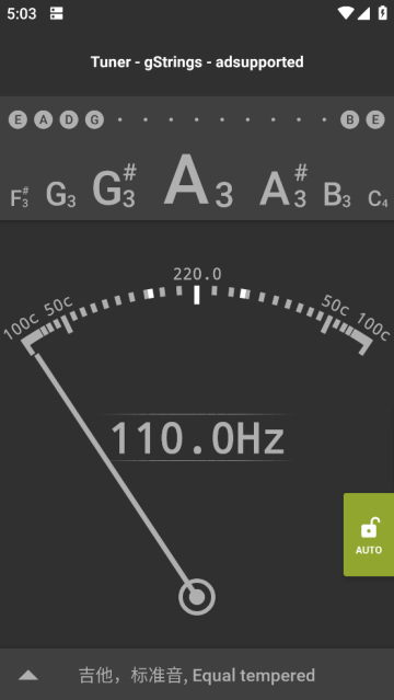gstrings调音器安卓版是一款可以给超多乐器进行音乐调音的手机软件,如果你有吉他等弦乐器,下载一款调音器对你来说一定是有用的,这款软件只需要打开放置,然后你弹几个音就可以进行调音了,是一款很不错的软件哦,一定要下载试试!