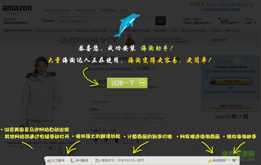 2、amazon到手价自动计算,在您访问美国Amazon网站时,海淘助手将自动获取商品价格,完成商品汇率换算,转运费用计算,推荐最优惠的转运方案;