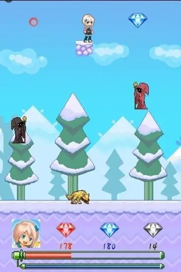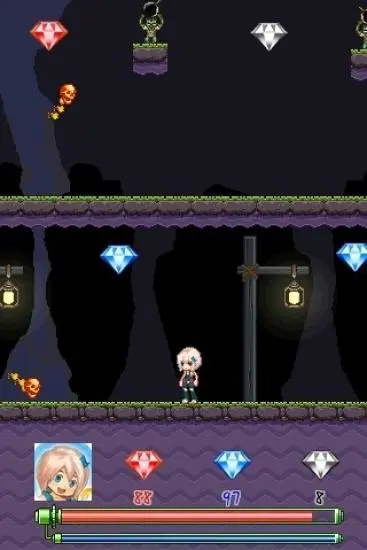 这是一款横版过关游戏,结合了动作,冒险,解谜等元素,操作简单容易上手,共有40多个关卡,有难度哦,来挑战一下吧,用你的力量和智慧帮助小魔女历险吧!