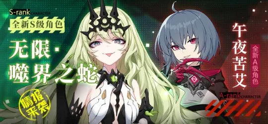 5.2版本更新后,S级角色「无限·噬界之蛇」和A级角色「午夜苦艾」将加入同一个扩充补给池,获取概率提升!另外在5.2版本中,舰长可以通过各类活动、开放世界委托和部分玩法商店获得「午夜苦艾」角色碎片。5.3版本更新后,「午夜苦艾」角色碎片也将加入主线远征探索关卡。