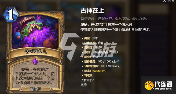 ②牌组有放入奥秘,其中【逝者之剑】可以在起手不错的情况下留,【古神在上】可以在起手先使用,可以扰乱对手挂任务的节奏;