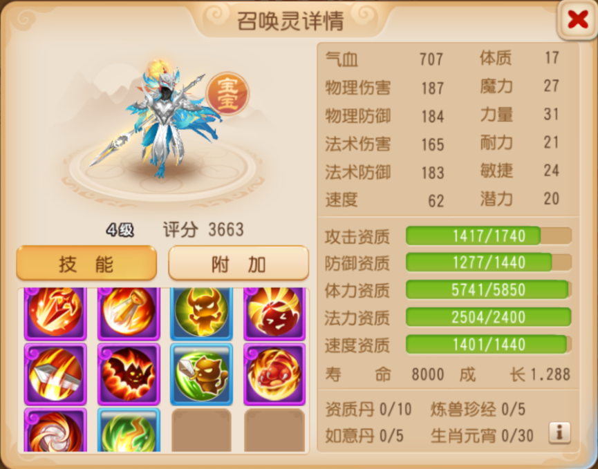 这只昴日星官同时拥有“剑荡四方”和“连诛”两大特殊技能,令人赏心悦目。这只10技能昴日星官打造成“连诛”连击攻宠,实力将不容小觑!