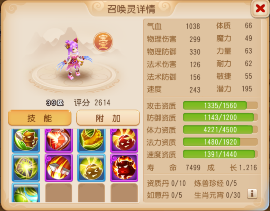 召唤灵成长:1.216