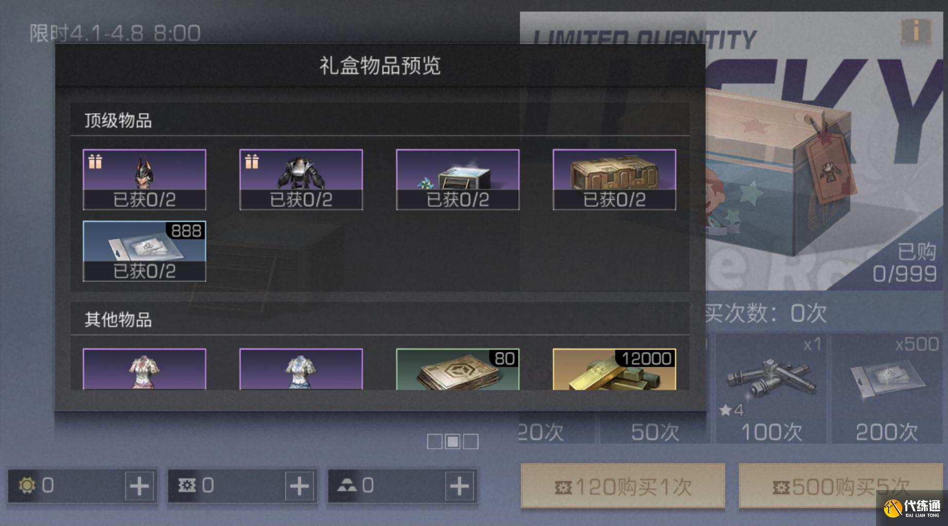 4.幸存者们活动期间累计购买100次幸运礼盒:可以领取机械材料Lv4*1,用来制作武器,是非常高阶和稀有的资源。