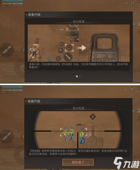 在明日之后狂沙荒漠这个玩法中,进入玩法的玩家们,身上所使用的的各种枪的配件将会被替换成适用于该玩法的热成像瞄准辅助器,该辅助镜可以很好的发现隐藏在风沙中的敌人,并且还能够辅助瞄准敌人的弱点。