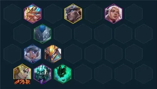 正义巨像—加里奥(4)、德玛西亚之力—盖伦(5)、钢铁少女—芮尔(4)、深海泰坦—诺提勒斯(2)、放逐之刃—锐雯(3)、暗裔剑魔—亚托克斯(1)、 正义天使—凯尔(5)、荣耀行刑官—德莱文(4)、魂锁典狱长—锤石(2)