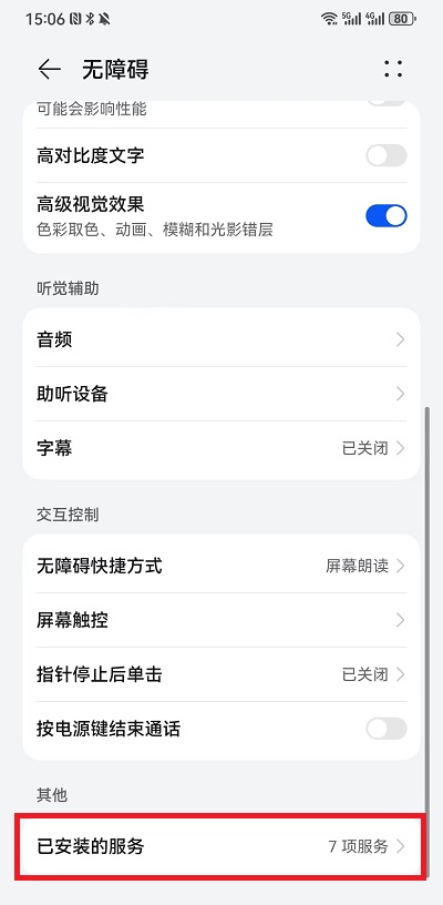 3、因为软件需要使用手机的无障碍功能,所以我们点击OK之后就会跳转到无障碍功能界面,在这里找到最下方的【已安装服务】;