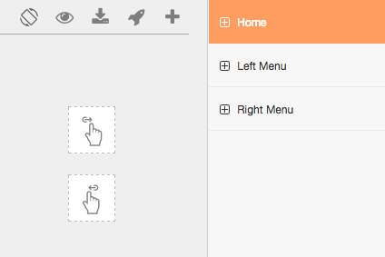首先假设你已经有了三个页面,分别是居中的主页面,左滑菜单以及右滑菜单,现在我们需要拖动两个全局手势组件到居中的主页面的任意位置,见下图: