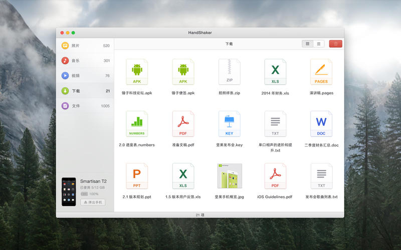 由于安卓系统和 Mac 连接时,传输和管理文件的方式都较为简陋,所以我们精心开发了 HandShaker ,使您在 Mac 上也可以方便自如地管理手机中的内容。