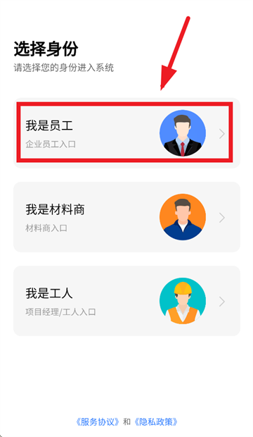 打开小叮当erp,进入后先选择身份