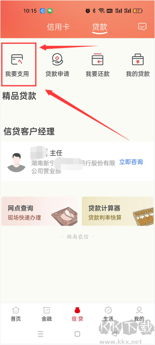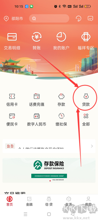 2. 点击首页“贷款”入口(存款等业务选择对应图标)