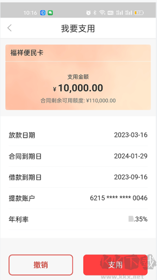 7. 点击“支用”,输入密码后即可完成操作,资金将实时到账