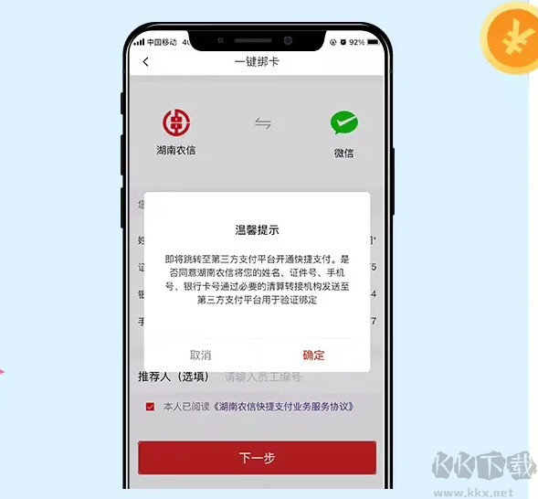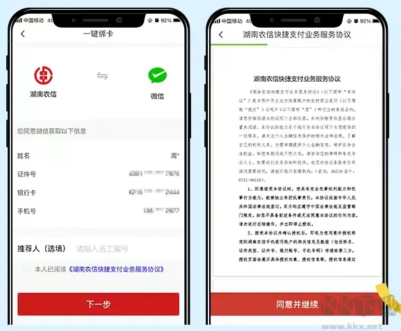 4、在详情页确认客户信息与快捷支付协议,同意后跳转至第三方平台完成后续验证流程