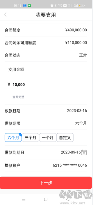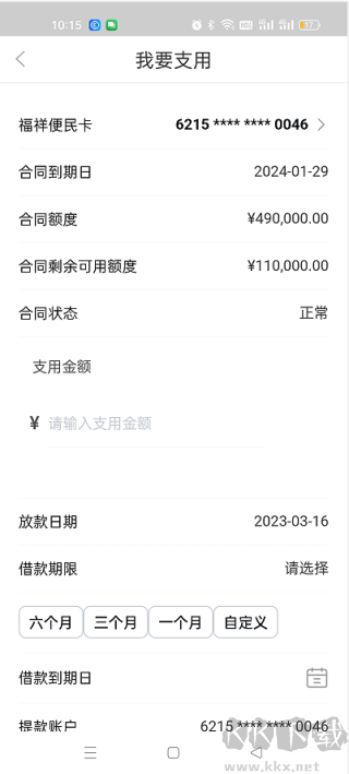 5. 输入支用金额与期限(推荐1年期,支持随时提前还款且无违约金)