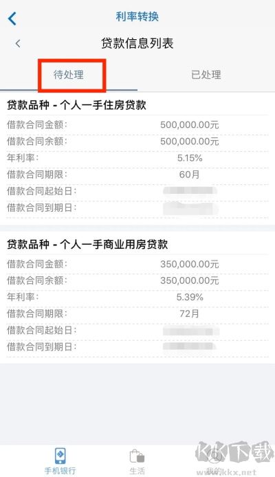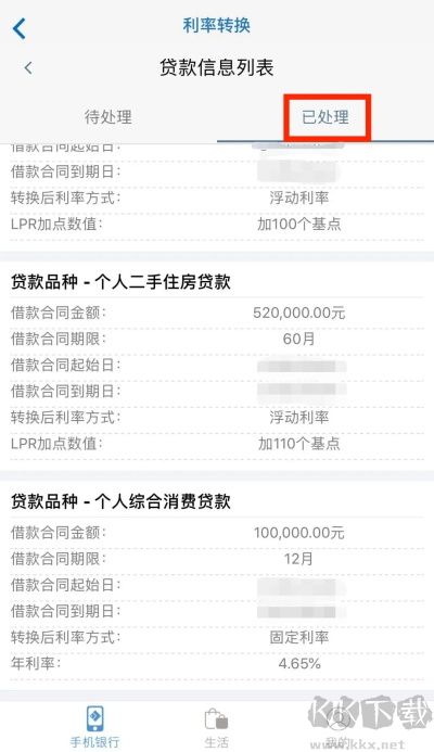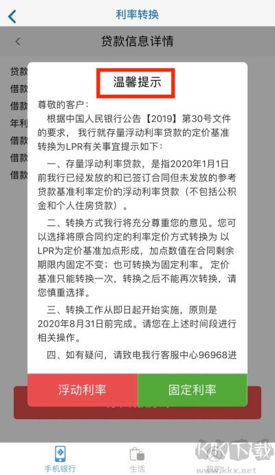 5、选择需转换的贷款,点击“浮动利率”或“固定利率”