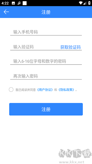 2、输入手机号获取验证码注册账号;