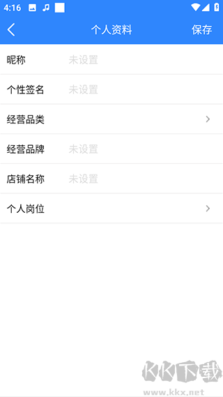 3、填写昵称和店铺名称等个人资料;