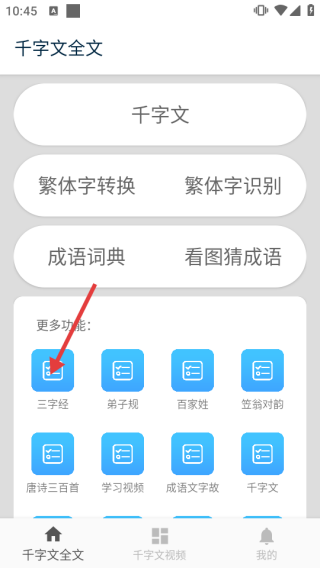 1、打开APP,在首页点击【三字经】,进入三字经内容页。
